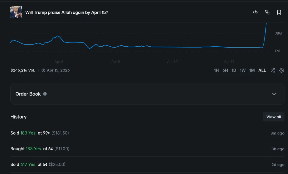 i put 10 $ yesterday that trump will praise allah again on polymarket