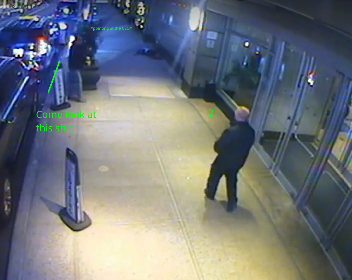 22 seconds in, Mangione has reached the other side of the street, and is now on the run.