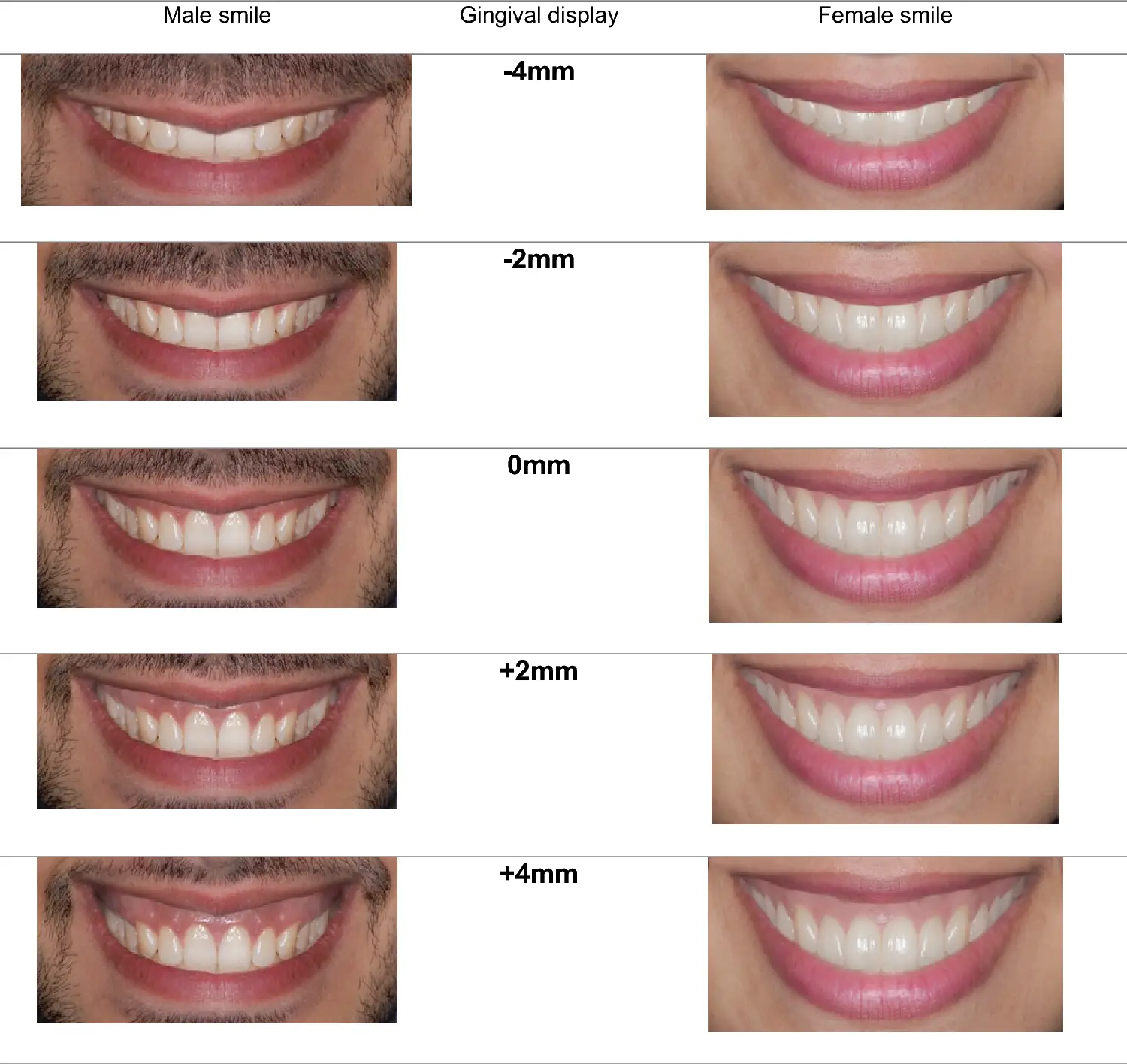 A gummy smile is seen when having more than 3-4MM of gingival display (amount of gum tissue visible above the top teeth) ideal is between 0-2MM.