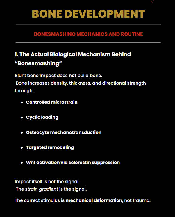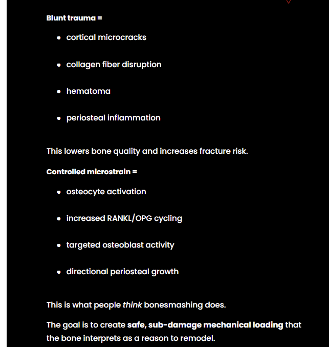 2.That he is unsure whether the gains from bonesmashing are actual bone or scar tissue (mentioned in his bonesmashing challenge video on yt)