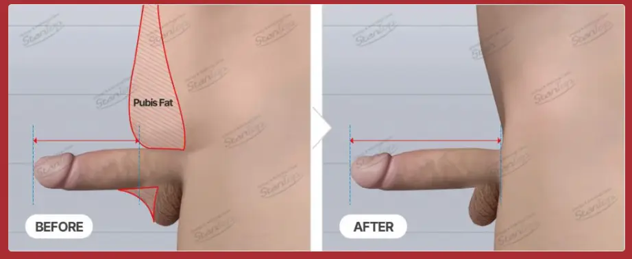 in this study they basically freezed the fat above the cock, which lead the fat tissue to be more compressed imitating a fat loss. Patients got +2.3cm(1 inch) with every 7kg (15 pounds) lost.