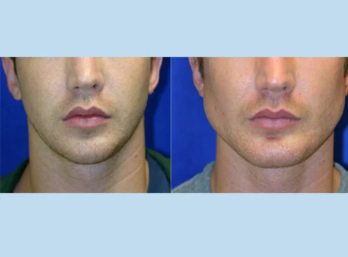 Implants can't increase the width of the mandible body like above, at least effectively. Wrap around implants often look obvious and uncanny: