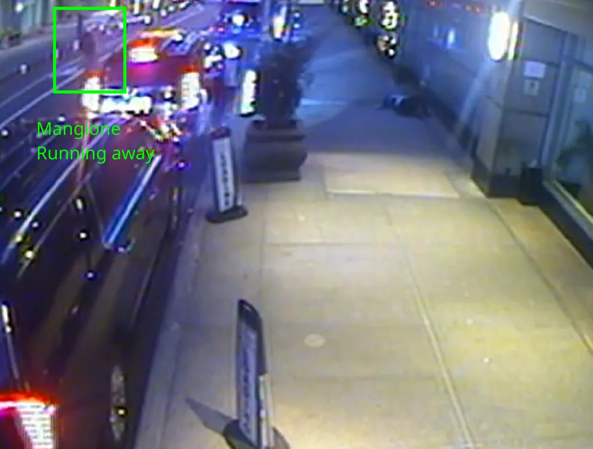 22 seconds in, Mangione has reached the other side of the street, and is now on the run.