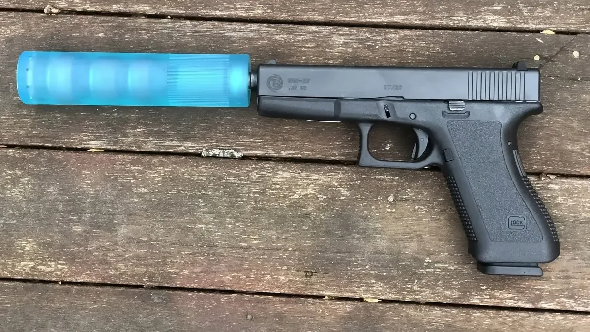 But, a big issue with this gun is the fact that, when a suppressor is added on [in blue, in attached photo of pistol above] it's slide [top part of the gun that moves when it rechambers] kind of gets stuck, resulting in the user having to automatically chamber it with the slide.