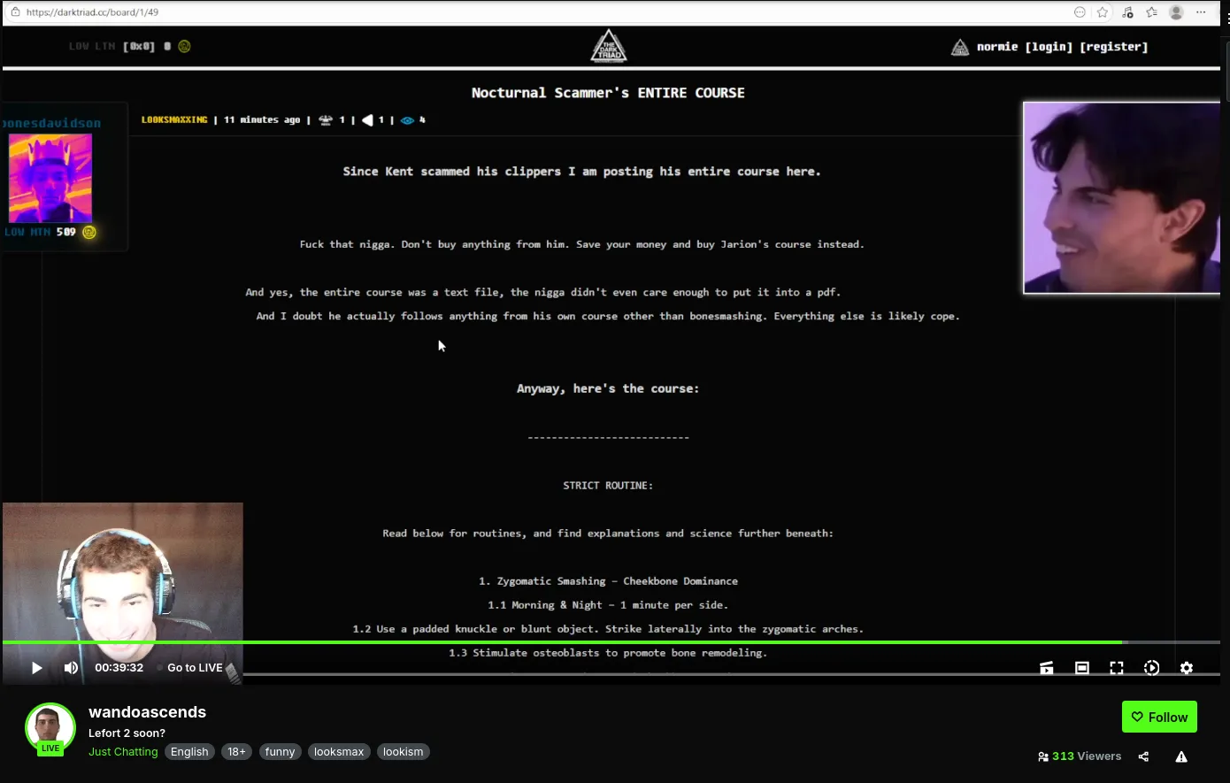 And I doubt he actually follows anything from his own course other than bonesmashing. Everything else is likely cope.